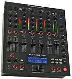 4 Kanal, 14“ PRO-Club Mixer, 3 Phono, 4 Line, 4 Aux und 3 Mikrofonkanäle ( zuweisbar zu jedem Kanal ) Digitale Effekte mit DSP (Digital Signal Processing): Echo, Auto PAN, Flanger, Manual Filter, Auto Filter, Reverb, Trans & Pitch Shifter, Effekte zuweisbar zu jedem Kanal und zu den